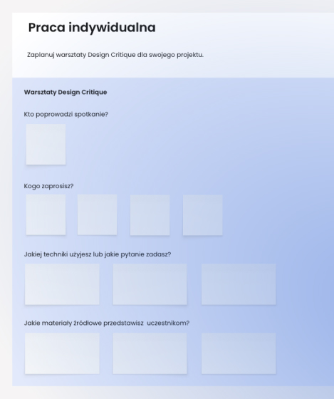 - Przykładowy plan warsztatów design critique